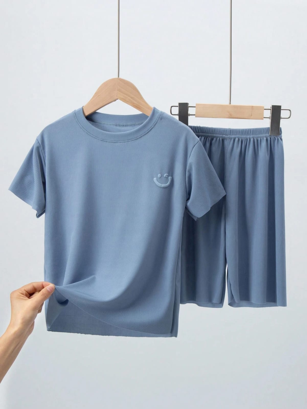 Conjunto cómodo de dos piezas: camiseta de manga corta y short a juego en color azul.